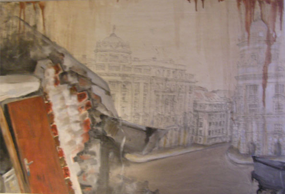 1. Ghost. Oil on panel. 2007. Won Best in Show Award, Southeastern Louisiana University's Visual Art Society Juried Student Exhibition2. Now and Then. Oil on panel. 2007. 3. Refugees. Oil on panel. 2007.