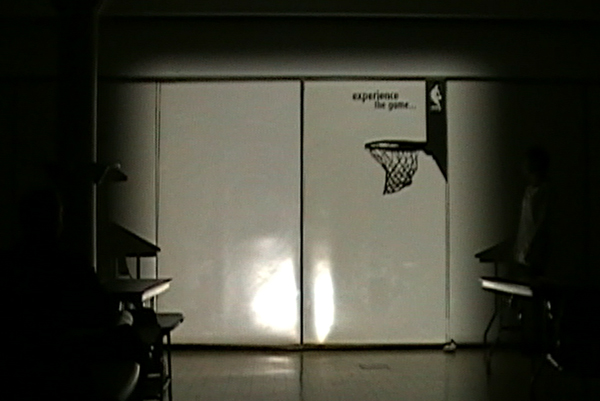 Part of Master's thesis project. NBA, experience the game... is an interactive ad that is projected to a specific location. The concept is that the audience will walk into the projection light and become a part of the ad.